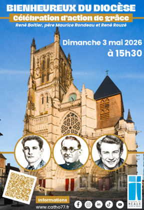 Dimanche 3 mai à 15h30 à la cathédrale de Meaux aura lieu une célébration d’action de grâce pour les 3 bienheureux du diocèse de Meaux (René BOITIER, père Maurice RONDEAU et René ROUZÉ)